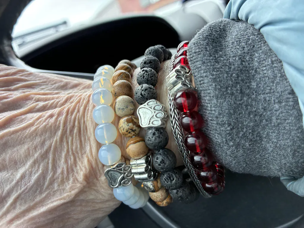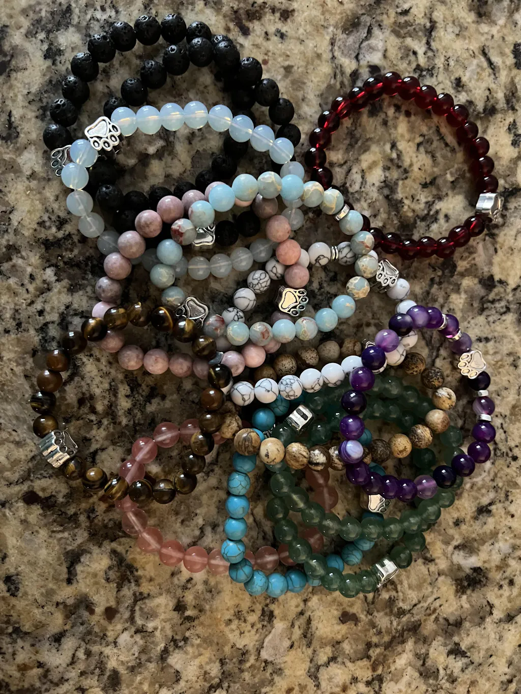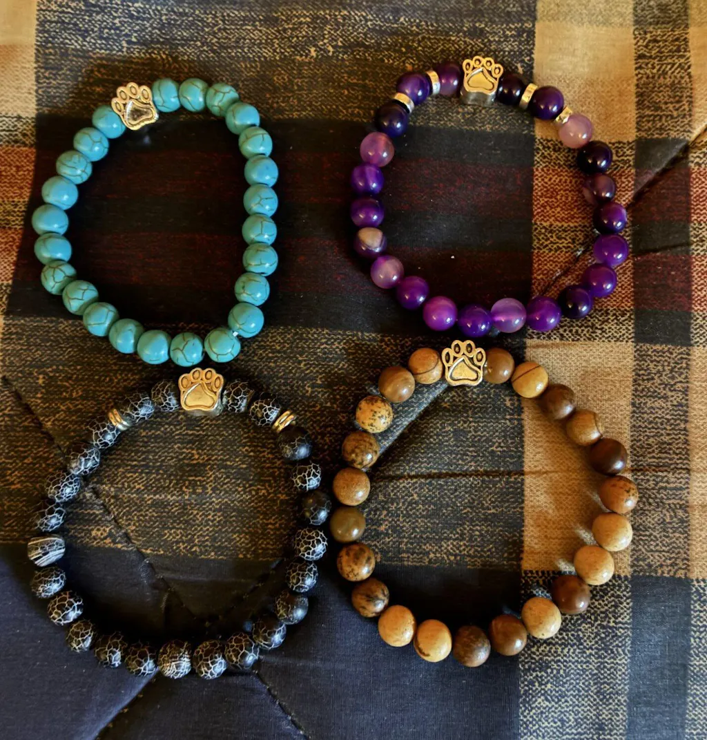 I have acquired 7 bracelets…I mix a match a couple at a time… I love them ! The paw print just adds that extra something!