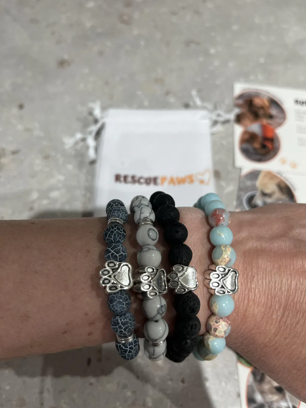 I ordered four bracelets from Rescue Paws, they are great quality and is great that goes into a good cause like feeding the dogs in need.
