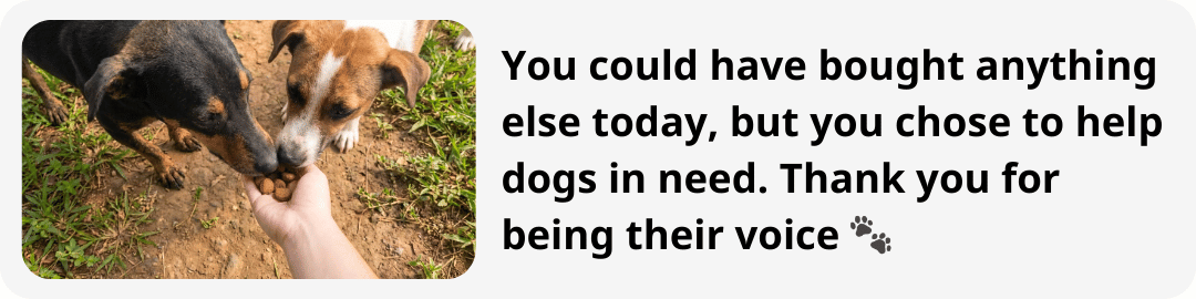 We work with trusted local partners and volunteers to get meals to dogs in need. Your purchase helps fund these ongoing operations.