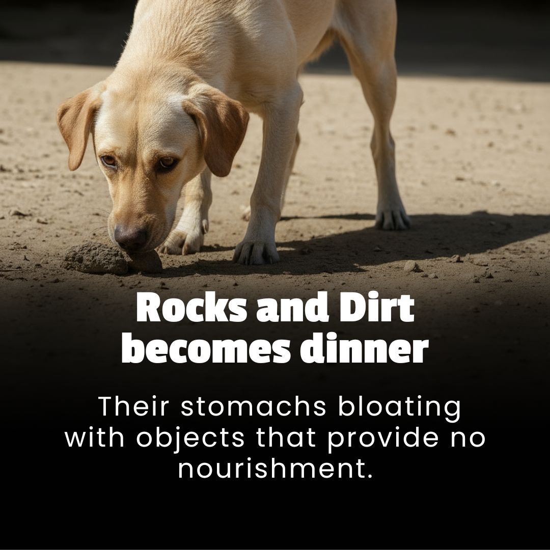 Picture your own pet desperately eating plastic and rocks because their stomach hurts so much from hunger.
