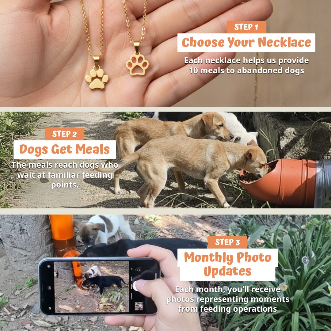 Each necklace helps us provide 10 meals to abandoned dogs
