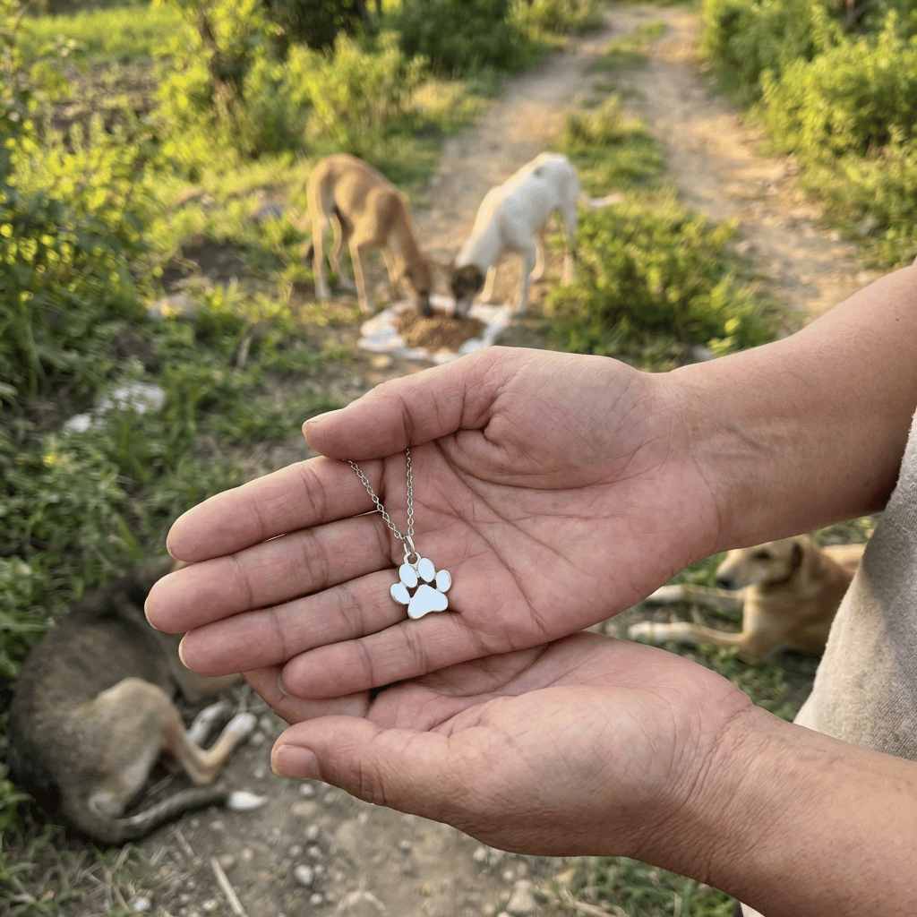 Each necklace helps us provide 10 meals to abandoned dogs