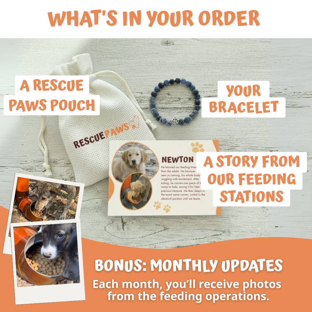 Each bracelet helps us provide 10 meals to abandoned dogs.