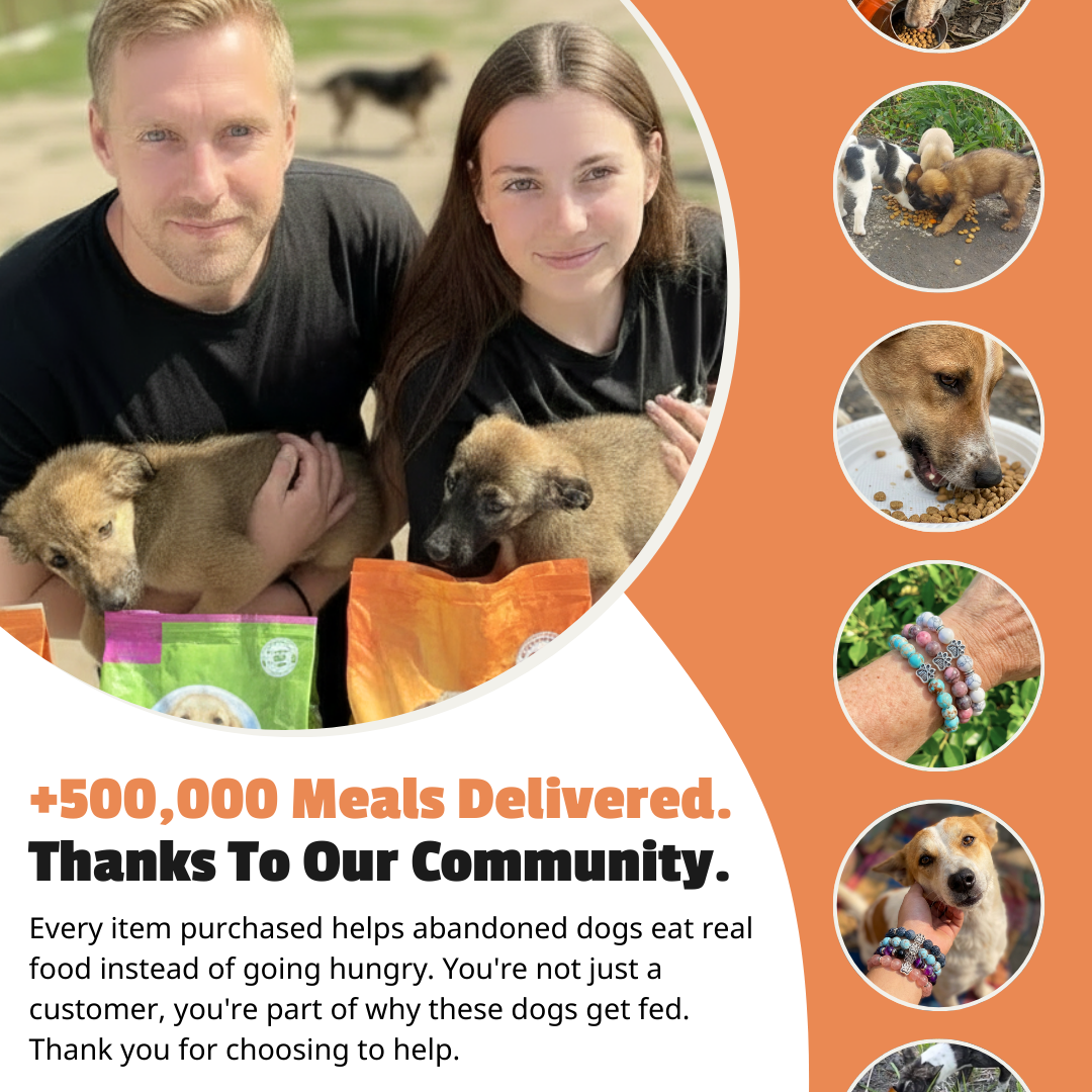 Each bracelet helps us provide 10 meals to abandoned dogs
